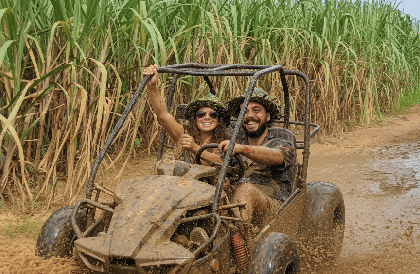 Metade do passeio num ATV e o regresso num Buggy, combinando aventura, natureza e pura diversão. Percorre plantações de cana-de-açúcar, aldeias típicas e as margens do lendário rio Chavón, com paragem para um refrescante banho no rio “El Gato”.